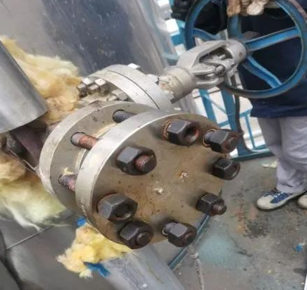 5.未发现截止阀至法兰处结晶,并且有大量介质流出,检查仪表零点正常,此液位指示正常。