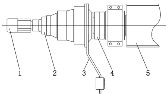 1-电机;2-减速机;3-扭力臂;4-缩紧套式连轴器;5-橡胶滚筒