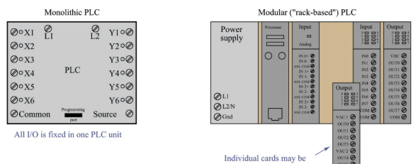 每个PLC都必须具有某种方式来接收和解析来自现实世界传感器(例如开关和编码器)的信号,并且还必须能够对现实世界中的控制元件(例如螺线管、阀门和电机)进行控制。这通常称为输入/输出或I/O能力。整体式PLC 在单元中内置了固定数量的 I/O ,而模块化(“机架”)PLC 使用单独的电路板“卡”来提供定制的 I/O 功能。