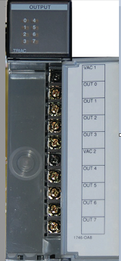 下一张照片显示了用于 Allen-Bradley SLC 500 PLC 的离散 AC 输出模块,使用 TRIAC 作为电源开关设备,而不是像 DC 离散输出模块通常使用的晶体管:
