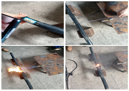 3.点燃现有煤气罐,调整火焰高度200mm,内焰40mm;