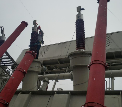 1、大型变压器消磁试验,接线时应注意高空坠落危险,做好高空作业措施。