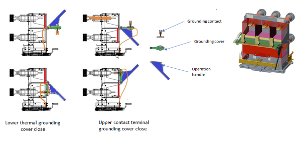 接地盖板也可通过电机和弹簧闭合,使接地组具有关合能力。